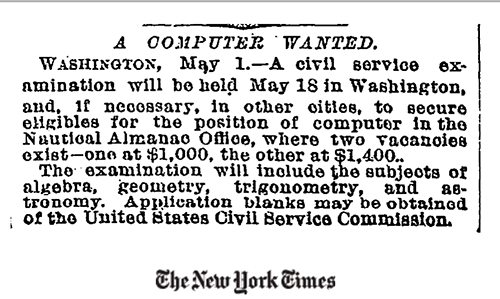 Le nombre de Human Computer explose dans différents domaines : switching boards, tenue de registre, prise de dictées, calculs de trajectoires balistiques, des tâches de bureau quoi… Celles-ci effectuées par des assistants numériques de nos jours.